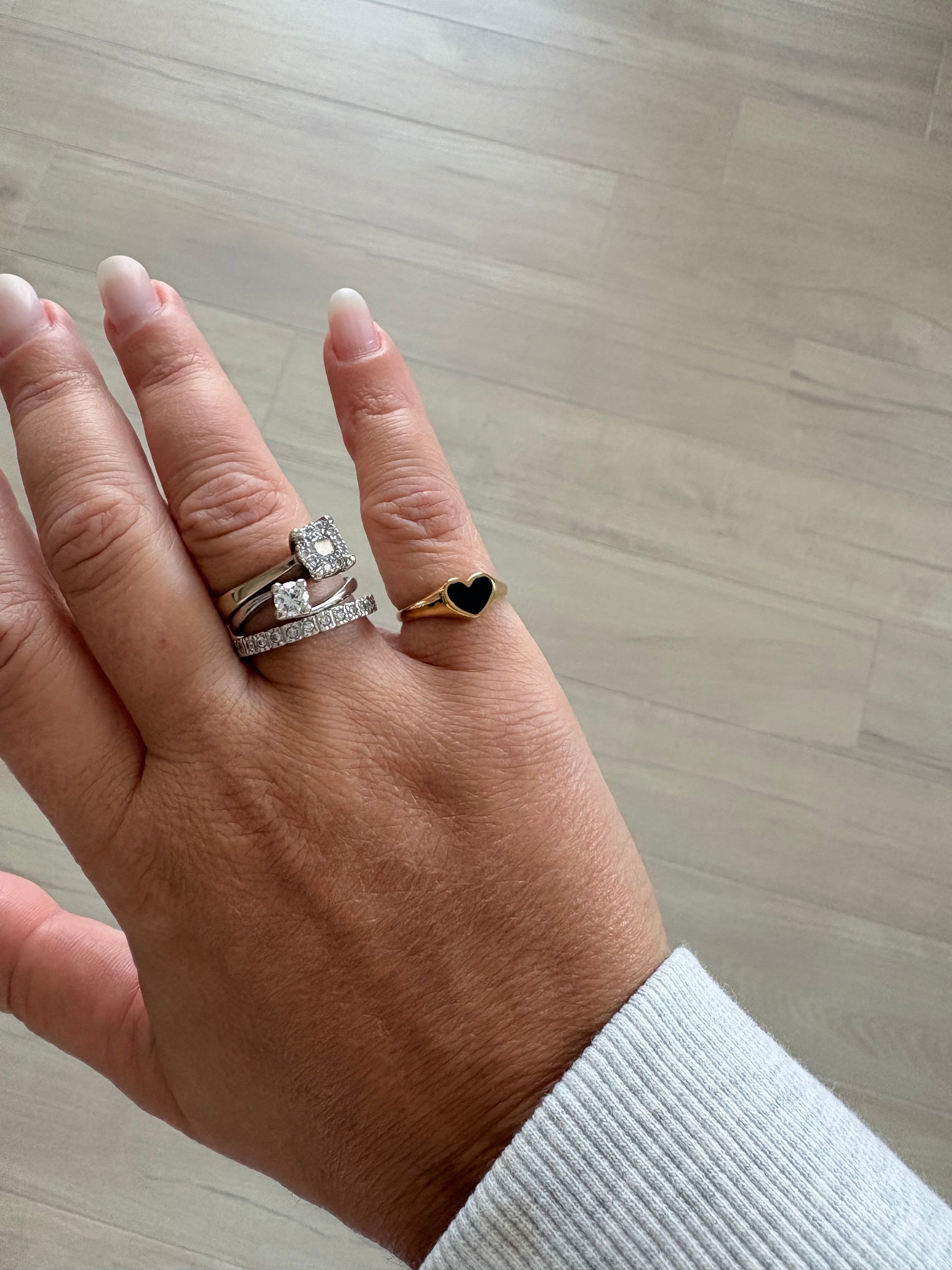 Questo anello può essere utilizzato sia da mignolo che per le altre dita considerando che é regolabile. É in acciaio inossidabile con cuore verniciato nero