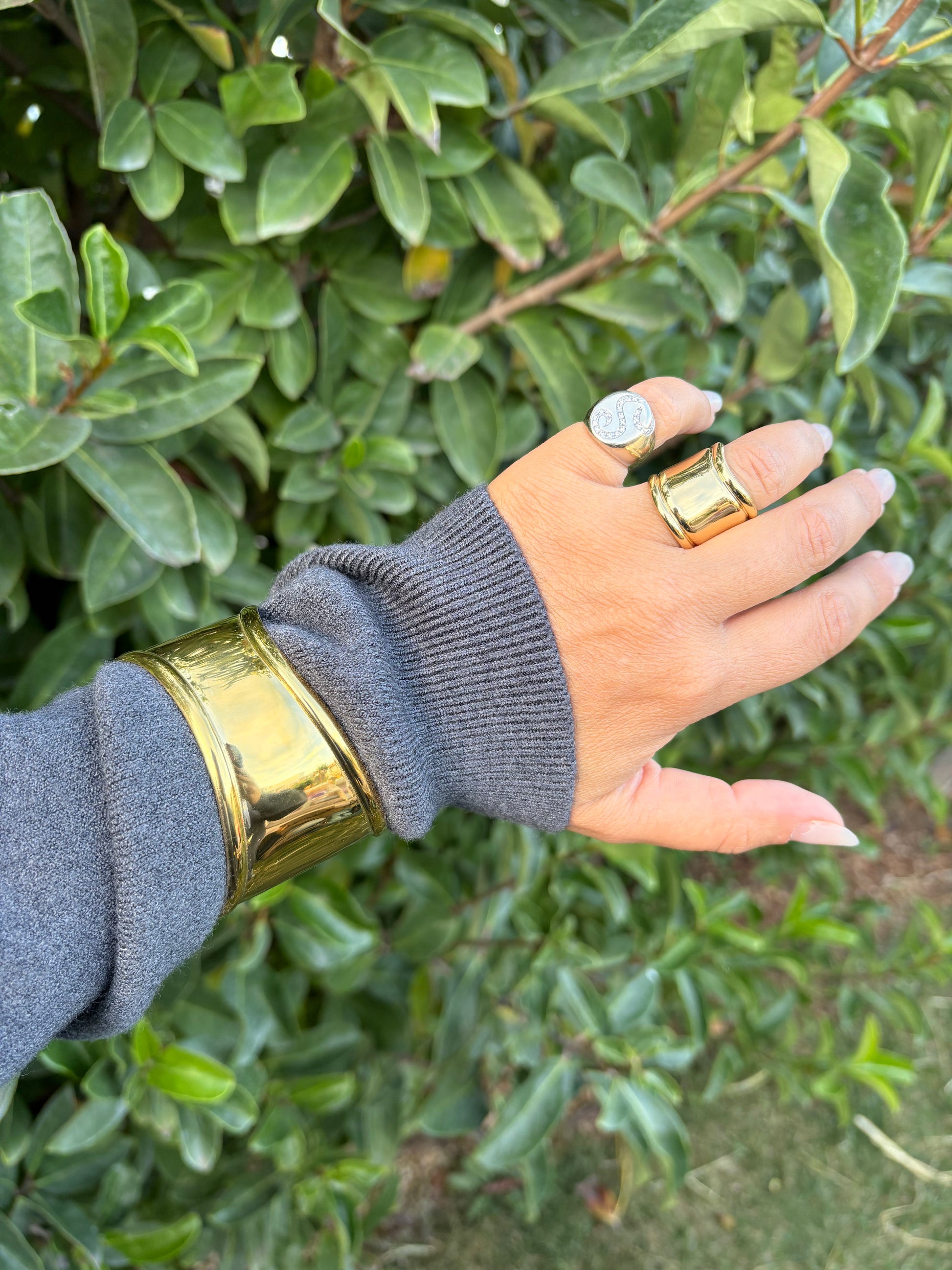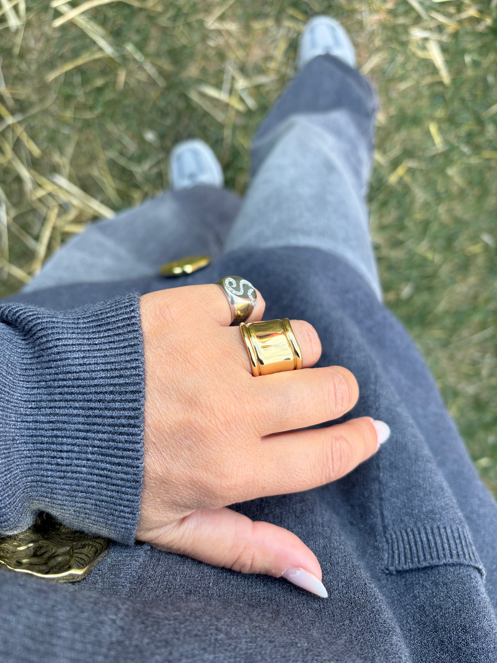 Anello in acciaio inossidabile regolabile. Combo perfetta con il suo bracciale rigido modello “schiava”.